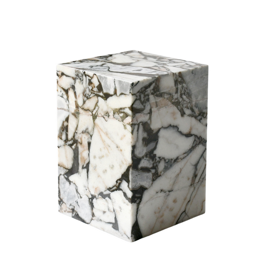 CUBI Plinth | Side Table | Natural Marble | Ocean Storm